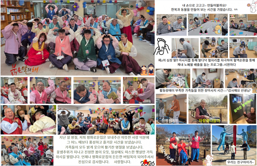 매서운 추위 속에서도 저희 시립평화로운집은 거주인분들의 온기로 가득했습니다.