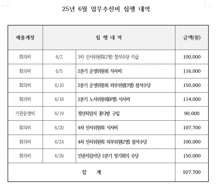 6월 업무추진비 내역공고 페이지 정보 작성자 한동주 작성일 25-07-04 17:35 조회 8,728회 댓글 0건 본문 6월 업무추진비를 다음과 같이 공고합니다. 이전글 다음글 목록 답변