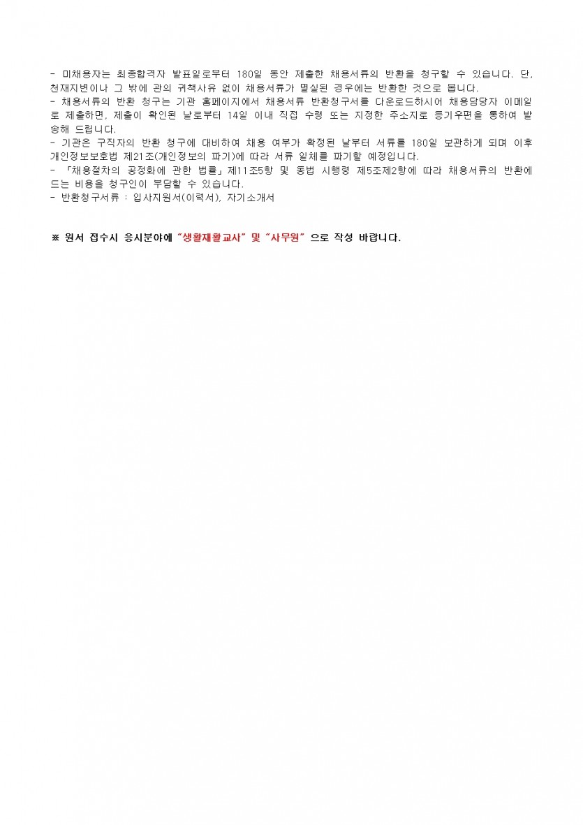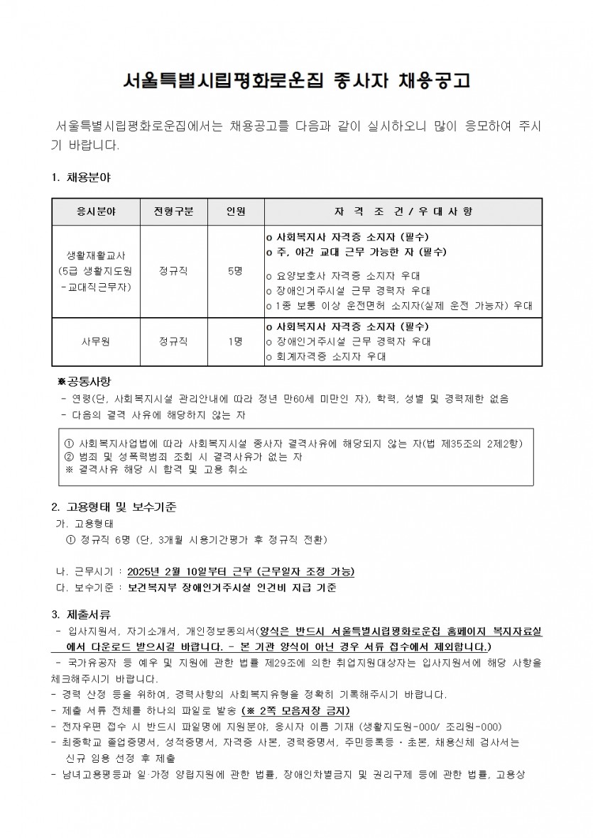 서울시립평화로운집 2025년 1차 직원채용 공고 페이지 정보 작성자 한동주 작성일 25-01-15 11:16 조회 16,162회 댓글 0건 첨부파일 파일 2025년-생활지도원 사무원 1월.hwp (115.5K) 151회 다운로드 DATE : 2025-01-15 11:21:22 파일 시립평화로운집 입사지원서이력서,자기소개서및개인정보동의서.hwp (54.0K) 135회 다운로드 DATE : 2025-01-15 11:21:22 본문 이전글 다음글 목록 답변
