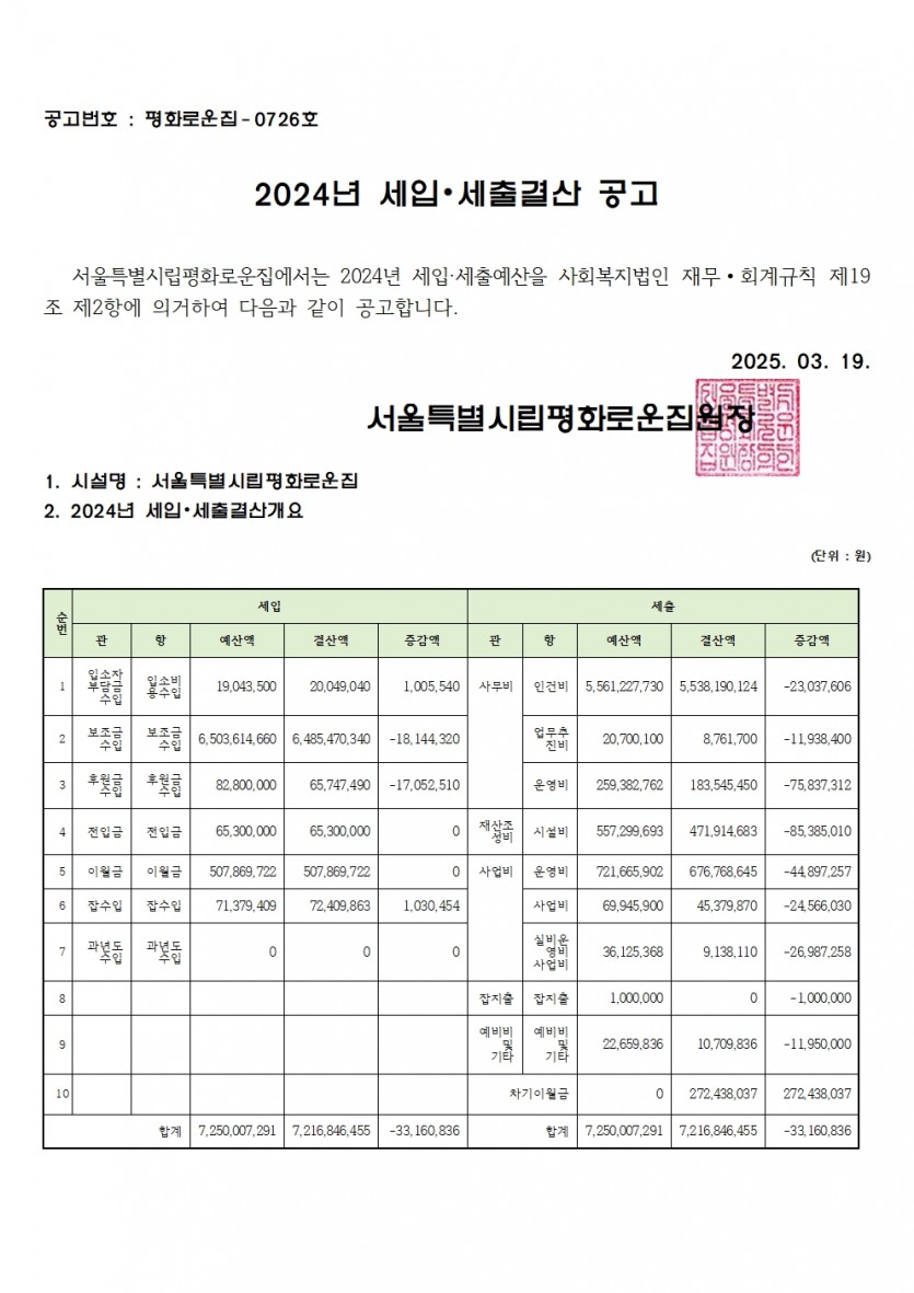 2024년 세입세출 결산서 공고 페이지 정보 작성자 한동주 작성일 25-03-19 13:28 조회 12,499회 댓글 0건 첨부파일 파일 홈페이지2024 세입.세출견결산공고.pdf (48.3K) 138회 다운로드 DATE : 2025-03-19 13:28:29 본문 2024년 세입세출결산서를 다음과 같이 공고합니다. 이전글 다음글 목록 답변