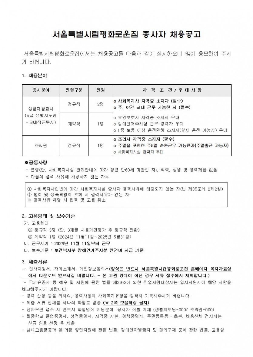 2024년 11차 직원채용 모집 공고 페이지 정보 작성자 한동주 작성일 24-10-14 17:49 조회 17,426회 댓글 0건 첨부파일 파일 2024년-생활지도원 조리원 11월.hwp (48.0K) 153회 다운로드 DATE : 2024-10-14 17:50:30 파일 시립평화로운집 입사지원서이력서,자기소개서및개인정보동의서.hwp (22.5K) 91회 다운로드 DATE : 2024-10-14 17:50:30 본문 이전글 다음글 목록 답변