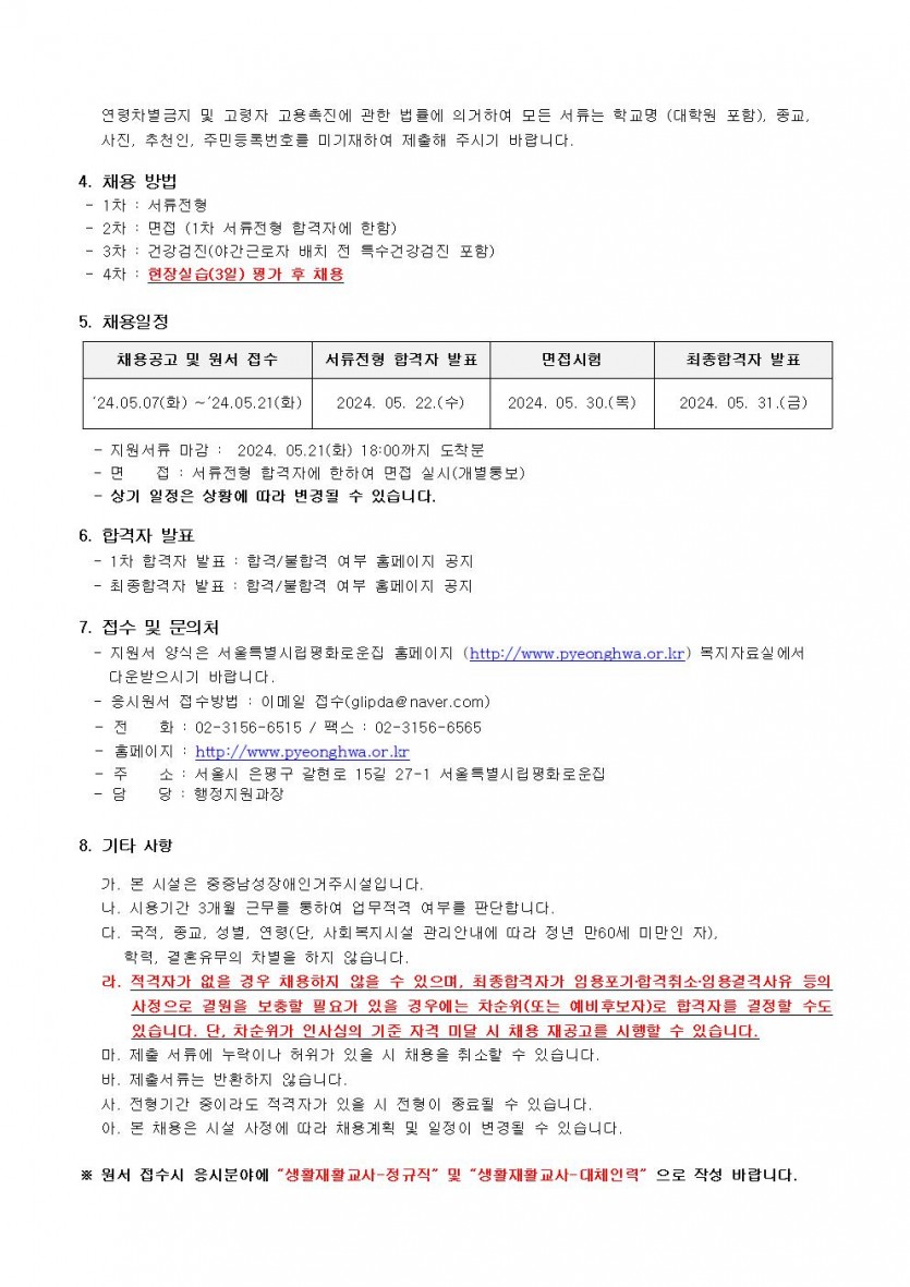 시립평화로운집 5차 직원채용 페이지 정보 작성자 한동주 작성일 24-05-07 17:45 조회 18,928회 댓글 0건 첨부파일 파일 시립평화로운집 입사지원서이력서,자기소개서및개인정보동의서.hwp (22.5K) 97회 다운로드 DATE : 2024-05-07 17:45:14 파일 2024년-생활지도원-5월.hwp (36.5K) 149회 다운로드 DATE : 2024-05-07 17:45:14 본문 이전글 다음글 목록 답변