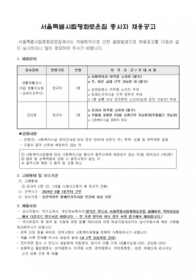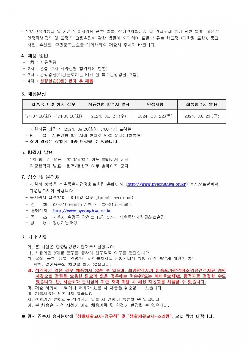 2024년 제8차 종사자채용 모집공고 페이지 정보 작성자 한동주 작성일 24-07-30 18:02 조회 18,363회 댓글 0건 첨부파일 파일 시립평화로운집 입사지원서이력서,자기소개서및개인정보동의서.hwp (22.5K) 178회 다운로드 DATE : 2024-07-30 18:02:25 본문 이전글 다음글 목록 답변