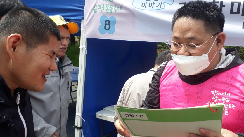 거주인 이야기 | 2023 은평봄봄축제 참가(4.21) 페이지 정보 작성자 한동주 작성일 23-04-22 15:54 조회 9,702회 댓글 0건 본문 장애인의 날을 맞이여서 준비된 서울 혁신파크 은평봄봄축제에 평화로운집 가족들과 함께 참여했습니다.인식개선활동 퀴즈 참여 및 이력서 작성등 활동도 참여하고 팝콘도 먹었습니다.장애인의 날을 맞아 모두 행복한 은평이 되기를 바래봅니다. 이전글 다음글 목록