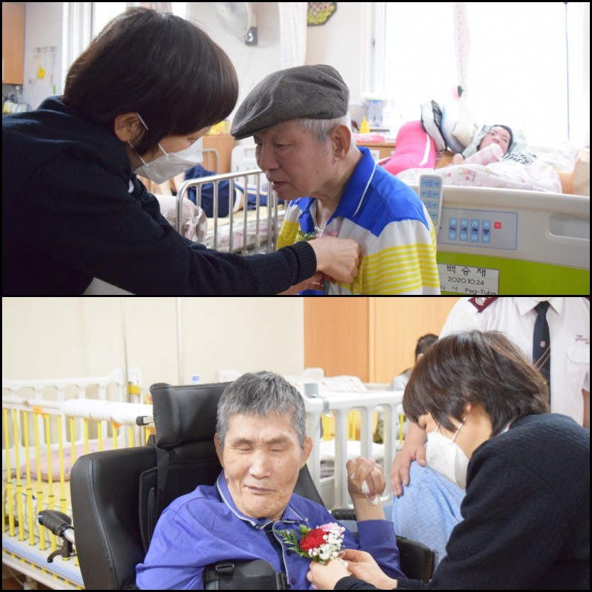 거주인 이야기 | 2023년 5월 8일 어버이날 행사 페이지 정보 작성자 박성호 작성일 23-05-08 15:11 조회 9,566회 댓글 0건 본문 5월 8일 어버이날을 맞아 시립평화로운집 거주인을 위한 작은 행사를 진행했습니다!60세 이상의 거주인을 대상으로 감사와 공경의 마음을 담아어머님 은혜, 당신은 사랑받기 위해 태어난 사람2곡의 노래를 불러 드리고 가슴에 카네이션을 달아 드렸습니다~경로효친의 전통적 미덕을 기리며 앞으로도 오래오래 함께 뵙기를 기도드리겠습니다.사랑합니다.♡ 이전글 다음글 목록