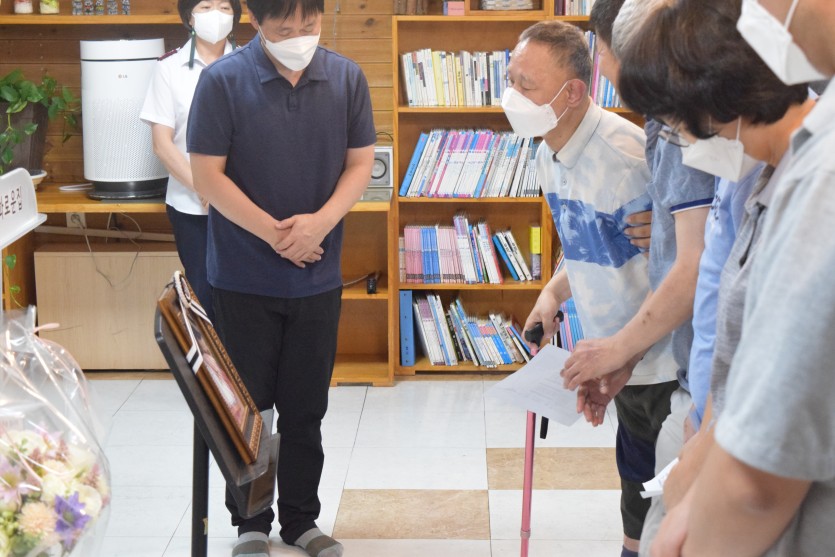 거주인 이야기 | 장*진님 천국환송예배 페이지 정보 작성자 한동주 작성일 22-08-02 11:02 조회 10,608회 댓글 0건 본문 8월2일 오전에 장*진님 천국환송예배가 있었습니다.올해 3월 기력저하로 병원에 입원하신 후 7.27. 소천하셨습니다.하나님의 품에 안기신 장*진님의 명복을 빕니다. 이전글 다음글 목록