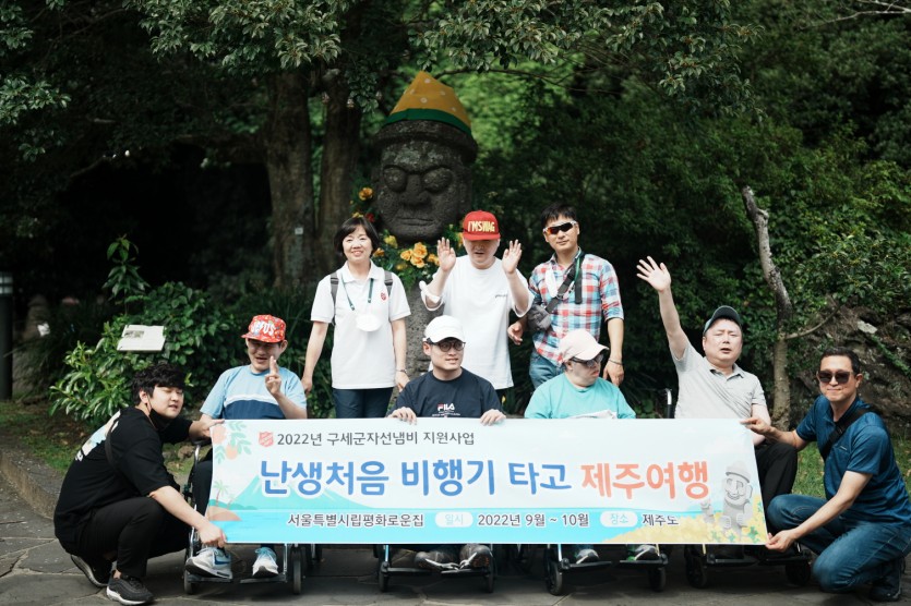 거주인 이야기 | 1차 난생처음 비행기타고 제주여행 페이지 정보 작성자 한동주 작성일 22-09-24 17:56 조회 10,476회 댓글 0건 본문 평화로운집 중중장애인들이 난생처음 비행기타고 제주여행을 갔습니다. 총 2박3일 일정으로 9월 20일부터 22일까지 2박3일 일정으로 사려니숲길 천지연폭포, 색달해변, 박물관등을 관람하면서 아름다운 제주를 만끽하고 왔습니다. 처음 타는 비행기 여행으로 설레임 가득한 추억을 만들고 왔습니다. '난생처음 비행기타고 제주여행'은 구세군자선냄비 지원을 통해 총 3차에 걸쳐서 9월,10월 중 각 2박3일 일정으로 중증장애인들과 진행되는 여행프로그램입니다. 앞으로 2차 3차 여행도 기대해주시기 바랍니다. 이전글 다음글 목록