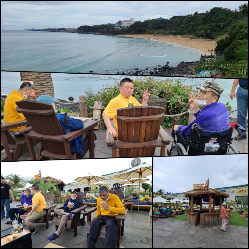 아침 산책을 마치고 색달해변이 한눈에 보이는 카페에서