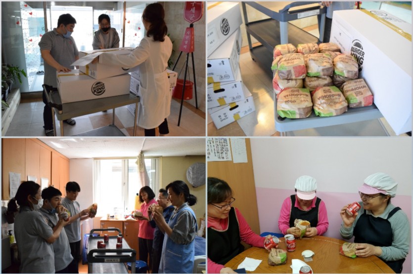 주신 후원금으로 햄버거와 콜라를 구입하여 전체 종사자들과 함께 나눴습니다.