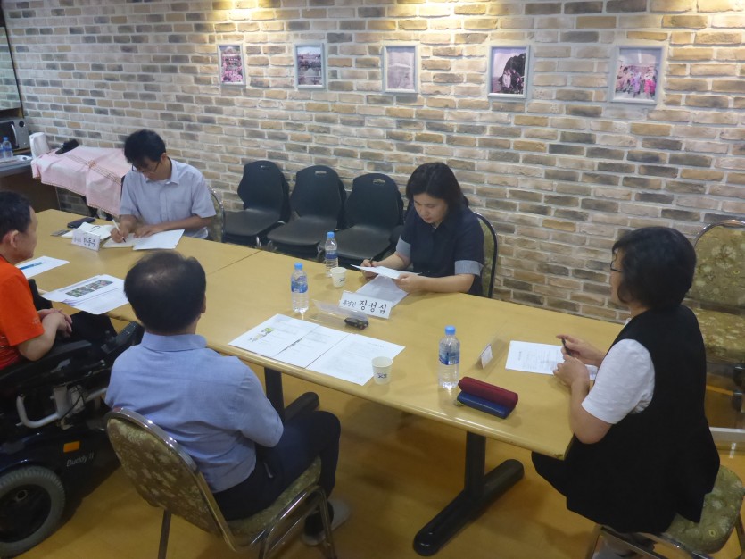 인권활동가 한해자 단장님과 장애인부모회 장성심 선생님, 지역주민대표  윤진석선생님, 평화로운집 거주인대표 윤성중 선생님, 종사자 대표 한동주 선생님이 참여하였습니다.