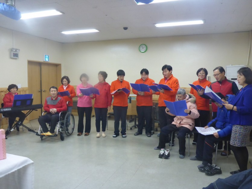 직원과 거주인으로 구성된 해피송 동아리 합창단의 축복송과