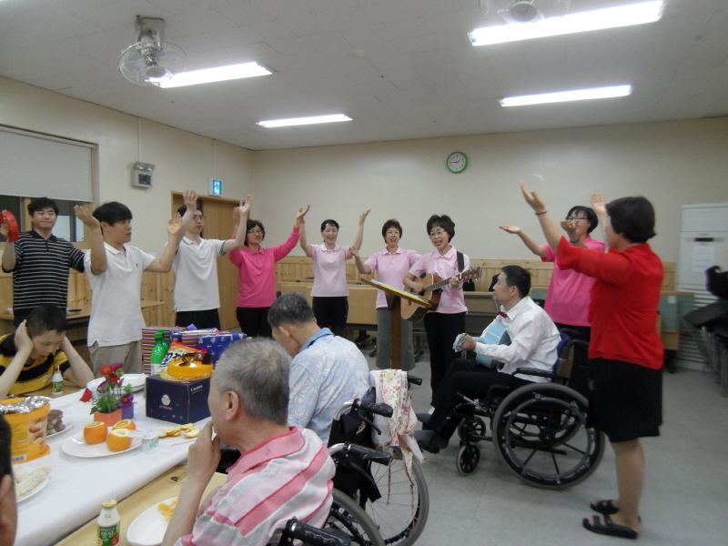 직원들이 모여 율동과 함께 축복송을 불러 드렸습니다.