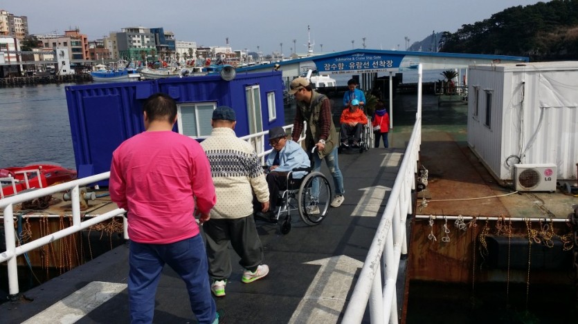 걷지를 못하니 업어서 잠수함에 탑승하기 까지