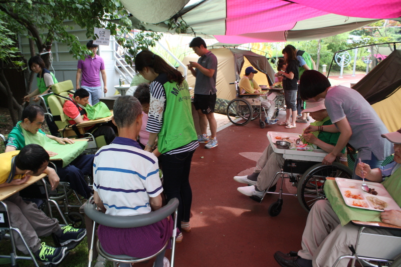 글램핑에는 평소에 신체적, 정신적 장애 특성상 외부활동이 극히 어려운 가족분들을 대상으로 캠핑의 분위기를 느끼고