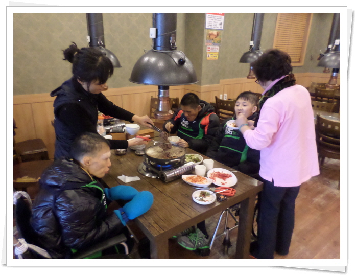 2생활관 기분좋은방 나들이활동 페이지 정보 작성자 이선희 작성일 14-02-18 16:14 조회 9,142회 댓글 0건 첨부파일 본문 2생활관 귀요미 가족들이 좋아하는 불고기 외식을 겸한 나들이 활동을 하고 왔습니다. 평소 행동장애로 인해 외출이 어려웠던 김인*님, 노상*님, 이용*님을 모시고 서오능 임가내에서 맛있는 불고기 만찬을 하고 평화의공원을 산책하고 돌아왔습니다. 이전글 다음글 목록