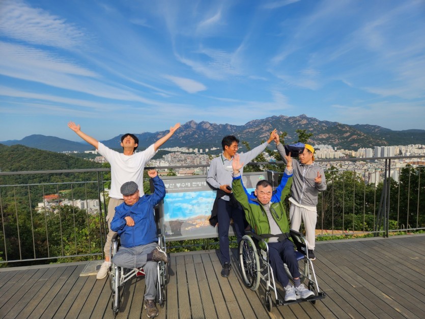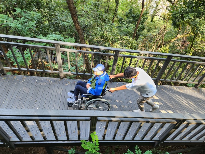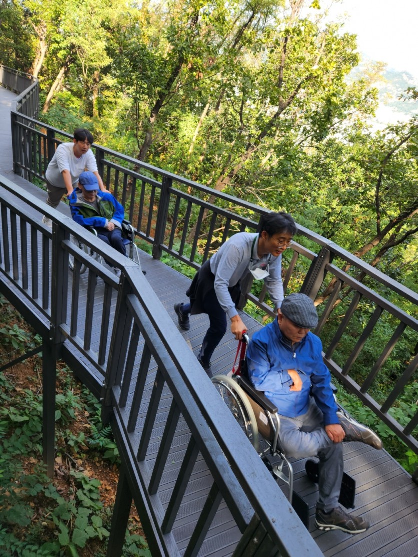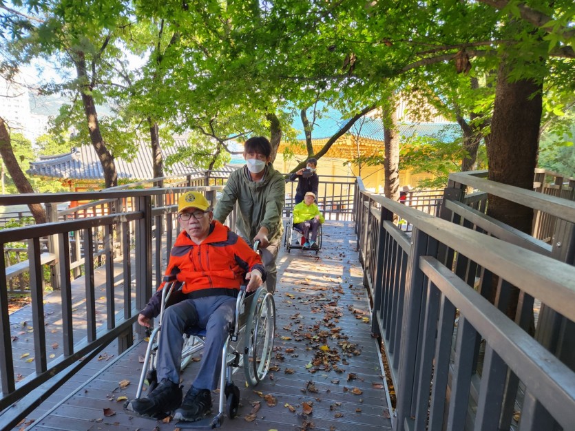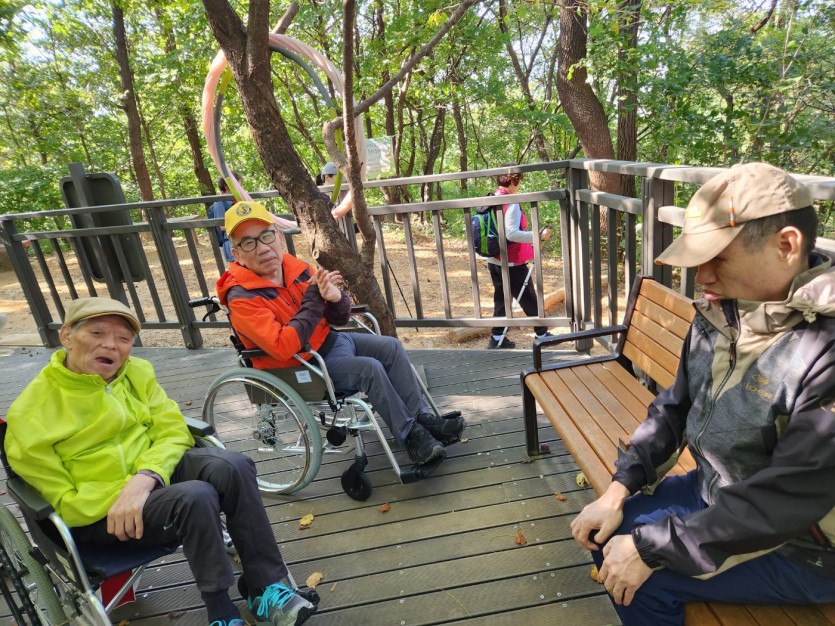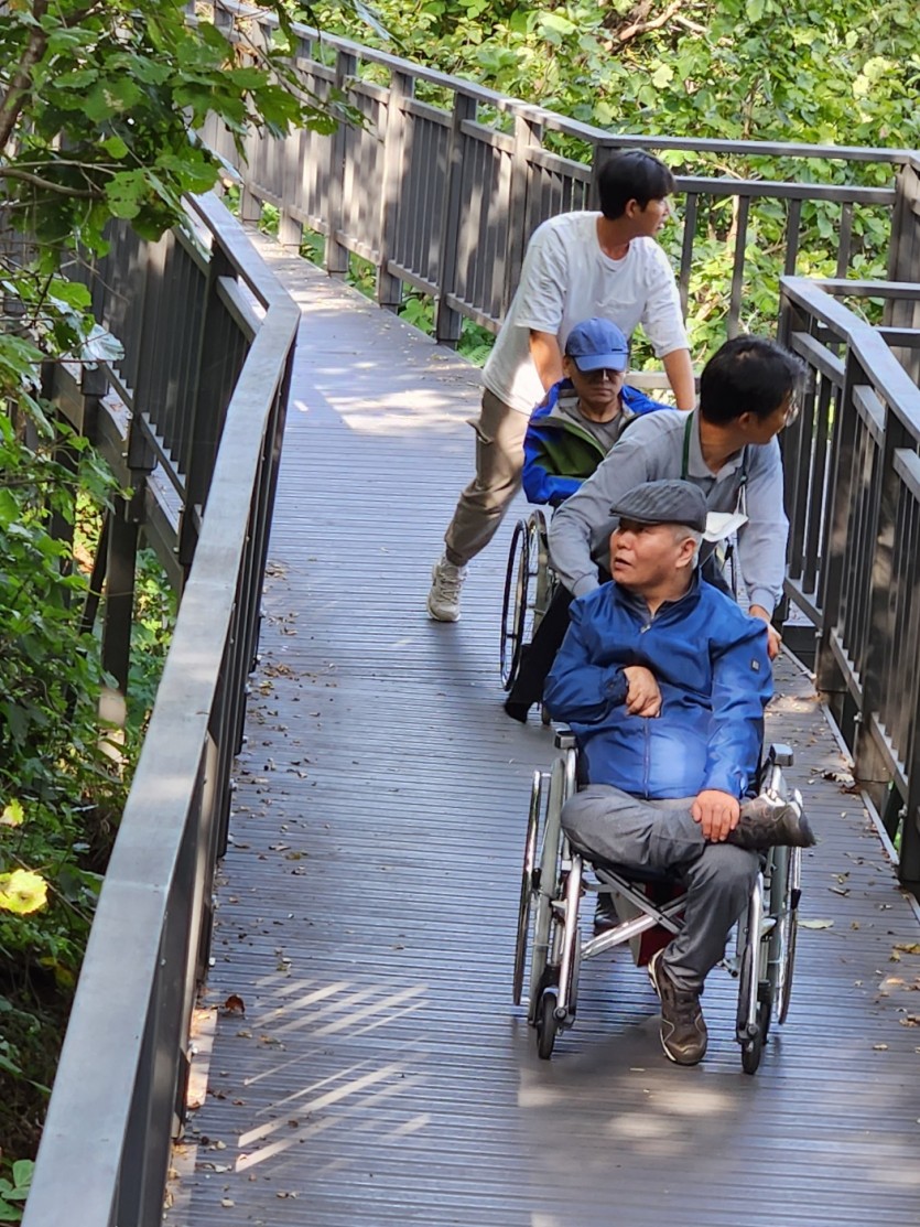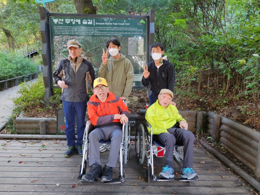 거주인 이야기 | 봉산 편백나무 휠체어 숲 트레킹 페이지 정보 작성자 장설궁 작성일 23-10-09 09:18 조회 8,832회 댓글 0건 본문 평화로운집 가족들과 10월 5일 6일 봉산 편백나무길 휠체어 트레킹을 다녀왔습니다. 비 온 뒤 맑은 하늘과 숲의 향기도 맡고 꽃과 나뭇잎을 만져보며 느껴보고힘들게 정상에 올라 맛보는 과일의 꿀맛 파아란 하늘이 웃어준 즐겁고 행복한 산행이었습니다. 이전글 다음글 목록