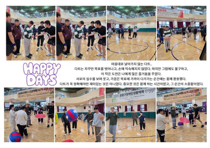 거주인 이야기 | 은평구 생활체육 한마음 페이지 정보 작성자 장설궁 작성일 25-10-27 10:12 조회 2,098회 댓글 0건 본문 은평구 생활체육 한마당에 다녀왔습니다. 여러 친구들과 함께한 시간은 즐거웠습니다.서로의 실력을 겨루기도 하고 응원하며 웃어보기도 하고이런 행사는 지역 사회의 유대감과 건강한 생활을 장려하는 데큰 도움이 되는 것 같습니다. 다음엔 꼭 이길게..라는 한 마디에 내년을 기약해 봅니다. 이전글 다음글 검색 목록