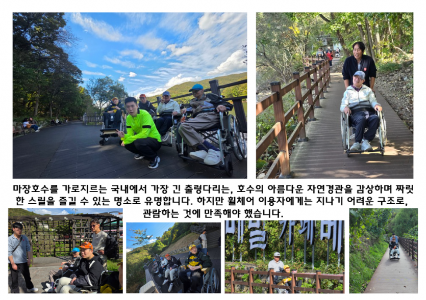 거주인 이야기 | 2025년 12차 문화누리나들이 종료 페이지 정보 작성자 장설궁 작성일 25-10-29 14:21 조회 2,086회 댓글 0건 본문 2025년 10월 25일, 시립평화로운집(중증장애인 거주시설)은 연중 문화 체험 프로그램 '문화누리나들이'의 12차 활동을 행복하게 마무리했습니다마지막회차 에서는 마장 호수 산책과 오랑주리 카페 체험으로사회적 참여와 정서적 안정을 도모 하였습니다. 함께 해주신선생님들에게 감사의 마음을 전합니다.감사합니다. 이전글 다음글 검색 목록