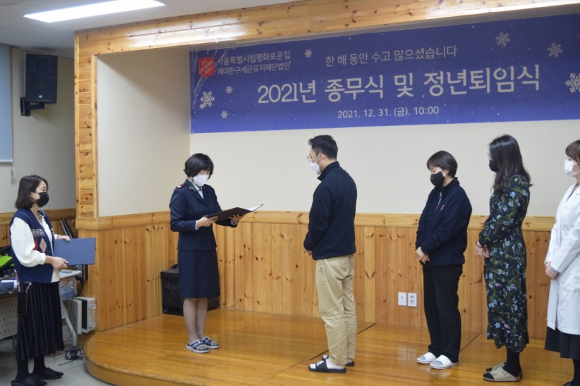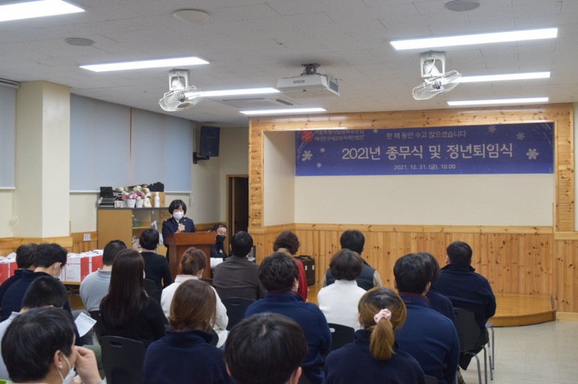 2021년 평화로운집 종무식 및 퇴임식이 12월31일(금) 본원 지하강당에서 진행되었습니다.