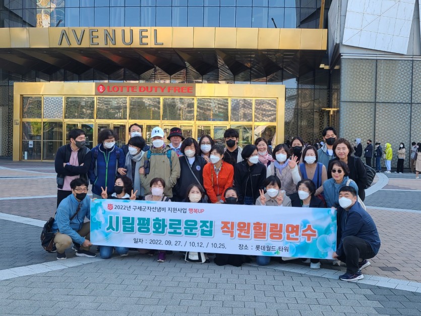 2022년 직원연수 페이지 정보 작성자 장설궁 작성일 22-10-13 16:12 조회 11,636회 댓글 0건 첨부파일 파일 2차직원연수0.5.gif (11.3M) 125회 다운로드 DATE : 2022-10-13 16:39:03 본문 2022년 9월 27일 원장님,10월 12일 국장님, 10월25일 직원과 함께한 직원교육...저희평화로운집 직원93분들이 약 30여분씩 3차에 걸쳐 직원연수가 있었습니다. 2022년 기준 대한민국 최고층 건물이자 세계에서 5번째로 높은 건물인 서울스카이를 다녀왔습니다. 중식후 영화관람과 롯데어드벤처투어가 있었구요~~갑자기 쌀쌀해진 날씨에 모든 직원분들 모~두 참석해 주셔서 감사합니다~~ 이전글 다음글 목록