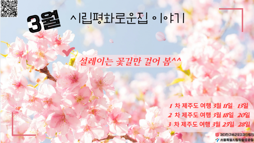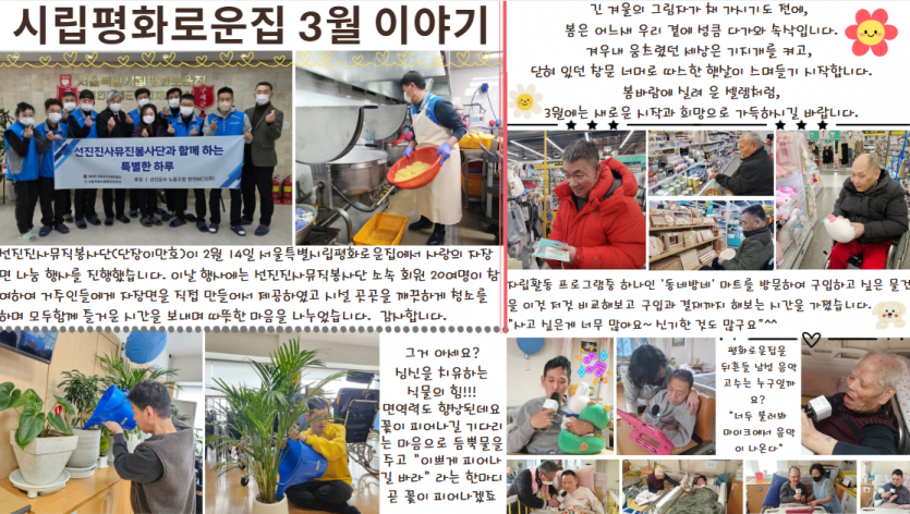 2025년 3월 시립평화로운집 후원감사편지 페이지 정보 작성자 장설궁 작성일 25-03-04 15:15 조회 4,642회 댓글 0건 본문 HELLOSPRING^^겨울의 추위를 견뎌낸 우리에게 희망과 설렘을 선물하는 3월꽃처럼 피어나는 행복을 가득 담아 보내드립니다. 이전글 다음글 목록