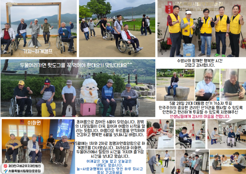 2025년 시립평화로운집 6월 후원감사 편지 페이지 정보 작성자 장설궁 작성일 25-06-05 17:52 조회 3,349회 댓글 0건 본문 붉은 장미와 푸른 신록이 아름다운 계절 여름이 시작되는 6월 입니다.붉은 장미의 열정처럼 눈부신 초록의 싱싱함처럼, 당신도 활기차고 건강하셨으면 좋겠습니다. 이전글 다음글 목록